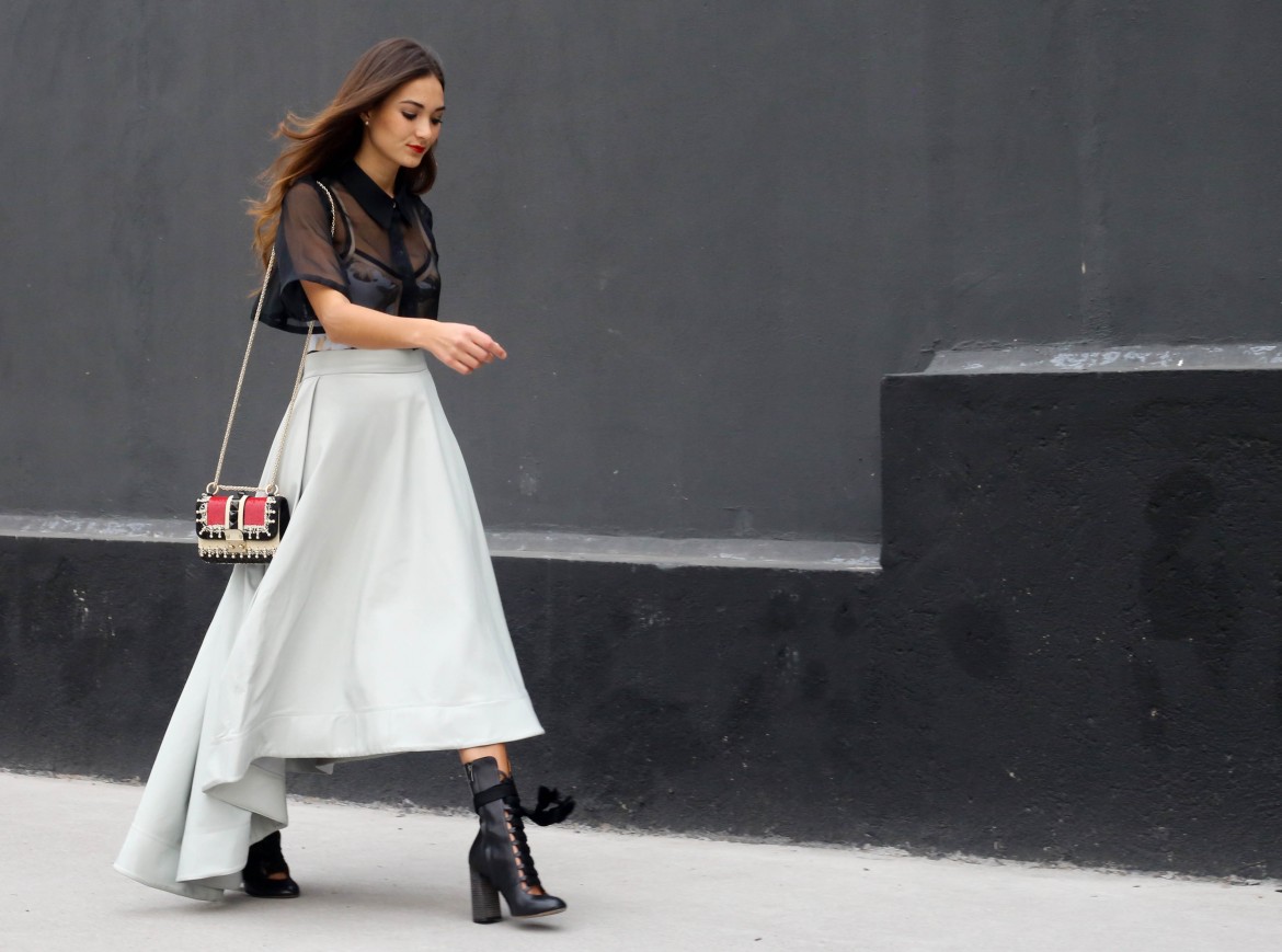 Accesories: Bag: Valentino, Black boots: Chloé, Brushed gold shoes: Stella McCartney